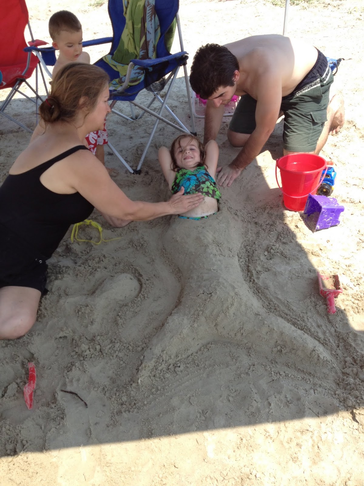 | Finally able to sit on the beach long enough to build a sand castle! |